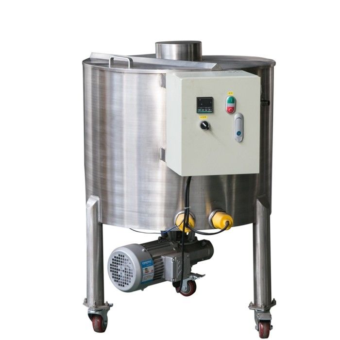 Der Schokoladenbehälter ist eine der notwendigen Ausrüstungen in der Schokoladenproduktion, die hauptsächlich bei Schokoladenmasse/Füllungen zur Wärmespeicherung nach dem richtigen Mahlen und Schälen verwendet wird.